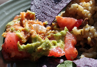 2. Then mash the avocados stir in the garlic, chili powder, salt, and lime juice. Spread on top of the beans